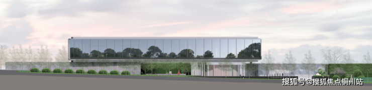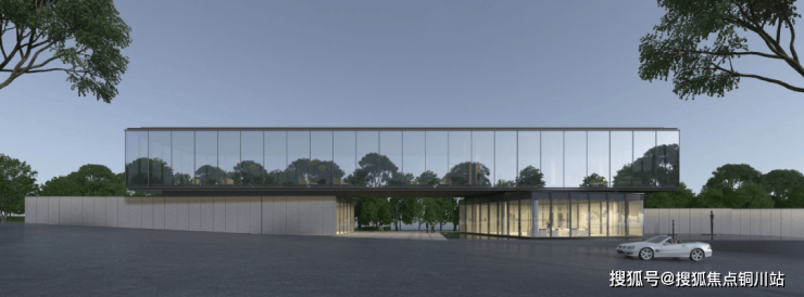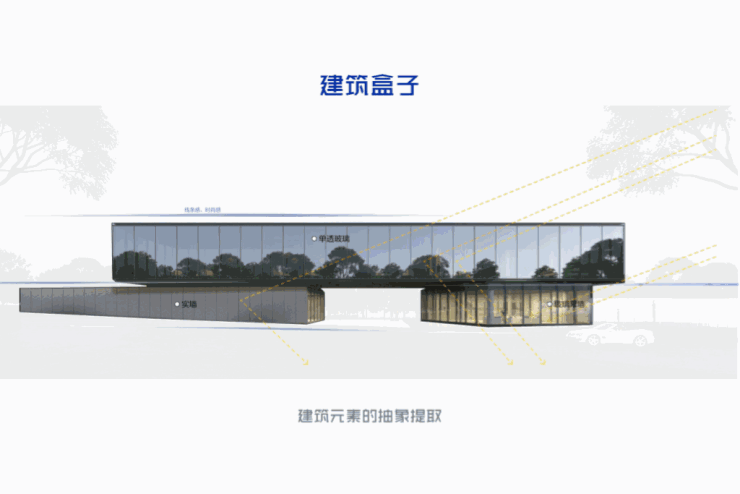 一个面宽将近60米的主盒横于二层,犹如一座云上展廊,朝向一片城市绿地。