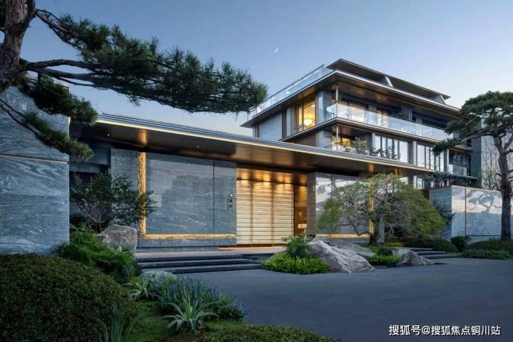 叠拼已经做出实景展示,可以看到绿城将屋檐、立柱、栏杆等东方古典建筑符号进行了现代化转译,并大面积铺陈于建筑之上,让传统东方美学妥帖安放,又平添现代摩登质感。
