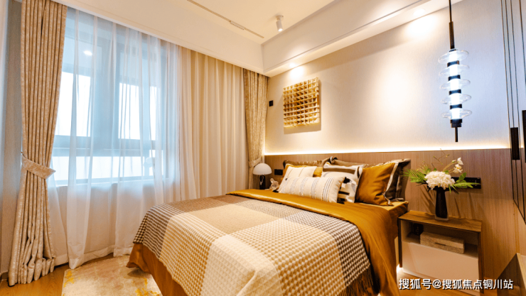 带独立卫浴间的套房主卧,将大面积飘窗融入后,还能额外打造独立衣帽间,居住的实用感与品位感皆可满足。