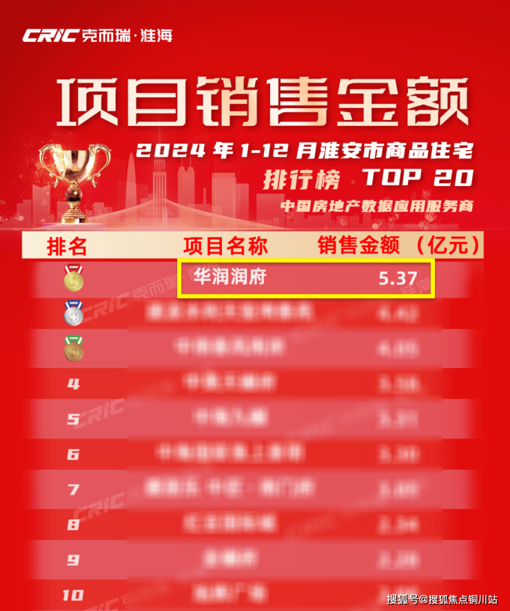 2024年,润府1年卖掉5.37亿,位列全淮安第1名。