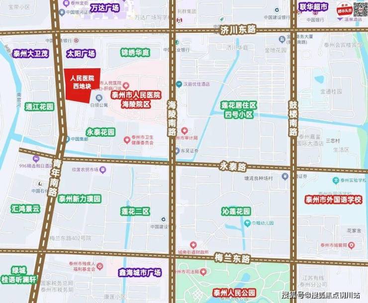 该地块东至海陵区规划支路、南至永康路、西至青年路、北至规划支路,紧靠泰州大卫茂、万达广场、人民医院,临近实验学校、省附中、大润发、人民公园……
