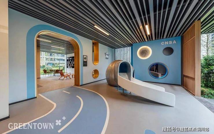 生活最好的样子不是一个人的精致,而是一群人的多彩。项目以邻里空间为舞台,在建筑和园林之间,巧妙利用架空层,为家人营造无处不在的生活欢愉:红叶空间里,长者品茗对弈,和家人老友在这里闲谈家常,分享生活的美好和彼此的兴趣;青年的健身休闲空间,设置热身区、乒乓区、吊环等健身模块,业主家人可以在此尽情挥洒汗水,锻炼身心体魄;踏入孩子们的乐萌空间,犹如开启一场宇宙的未来探索,激发孩子探索科学的好奇心。