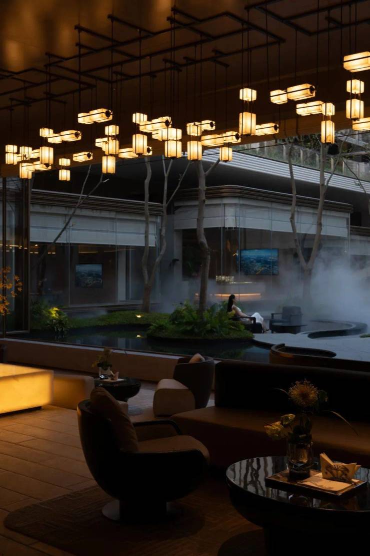 紧接着,是水院区,也就是第三进院落。这里有功能齐全引光入室的下沉庭院,有遮风避雨的风雨连廊,有嵩山七十二峰为灵感设计的园林景观。在这里,一步一景,移步换景。