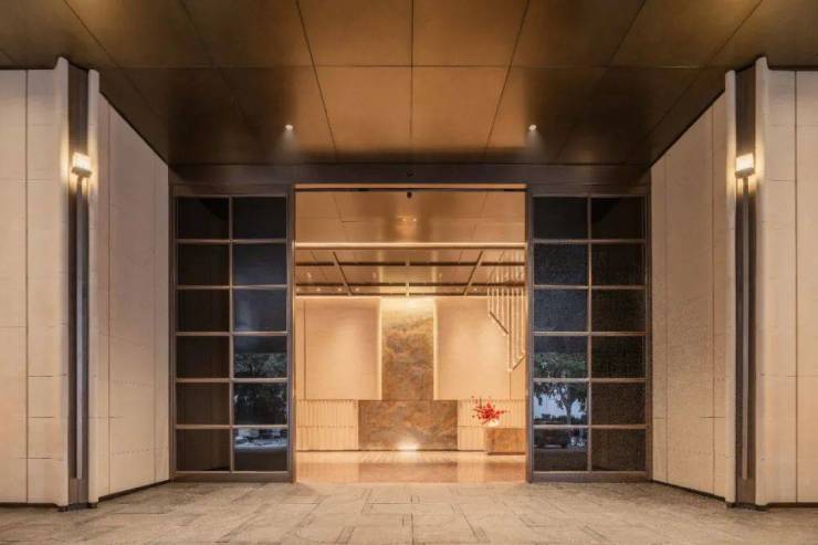 穿过前院区,就是四进院落中的第二进——仪式感满满的归家长廊。以独一无二的定制铝板为天,以完全对称的静水流深为径,以6.6米高的序列景墙聚气,辅以名贵树种点睛,这条并不算长的归家长廊,在郑州绝无仅有。