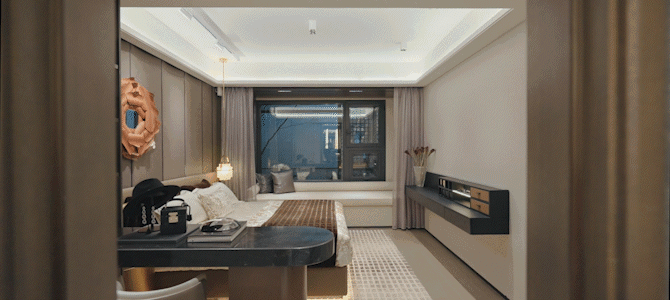 这就使得项目的次卧甚至只用放一张90cm的小床,就能借用飘窗空间,做成一个约1.8m的大床,同时次卧也拥有了更大的活动空间!