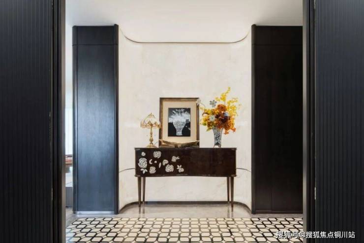 入户仪式感: 厚重的铸铝装甲门、搭配透光玉石的玄关,从归家的第一刻起,便以非凡的质感宣告了生活的品位与格调。