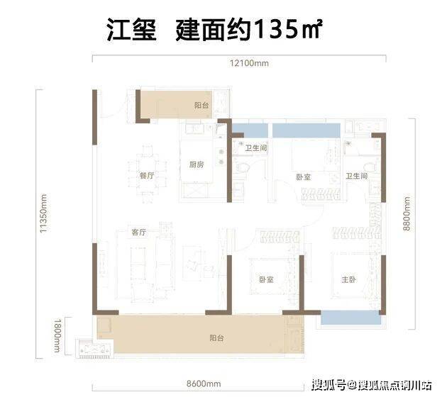 从结构上看,由于南北双阳台的设计,江玺的采光、通风等细节,显然还要更好。