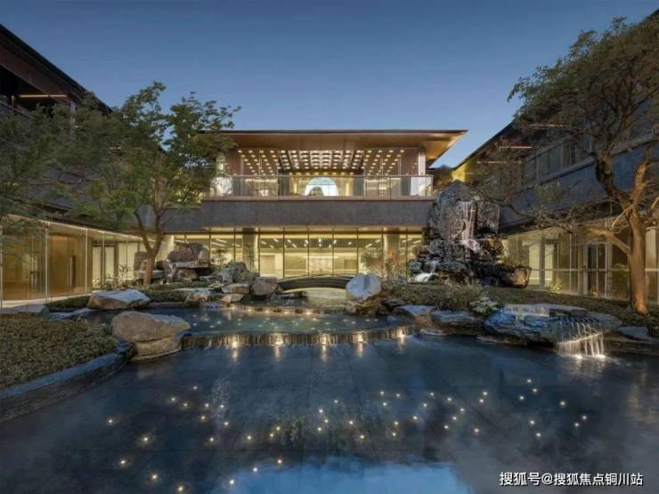 比如华建天庆中,生活向内心开放的理念,下沉式庭院中带来的沉浸式立体空间体验,交织着传统山水叠石景观,在会所中每个视角看出去都别有洞天。