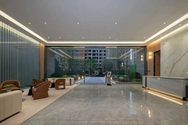 北入口设有临时落客点,实现人车分流。玻璃平开门以橱窗形式,将大区景观如画卷般呈现。