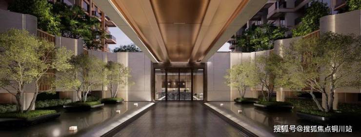 归家长廊使用的是手工定制铝板,还有定制的6.6米高的景墙,通过“树宅相守”的设计手法,让业主听着潺潺流水,影影绰绰,放松心情,徐徐归家。