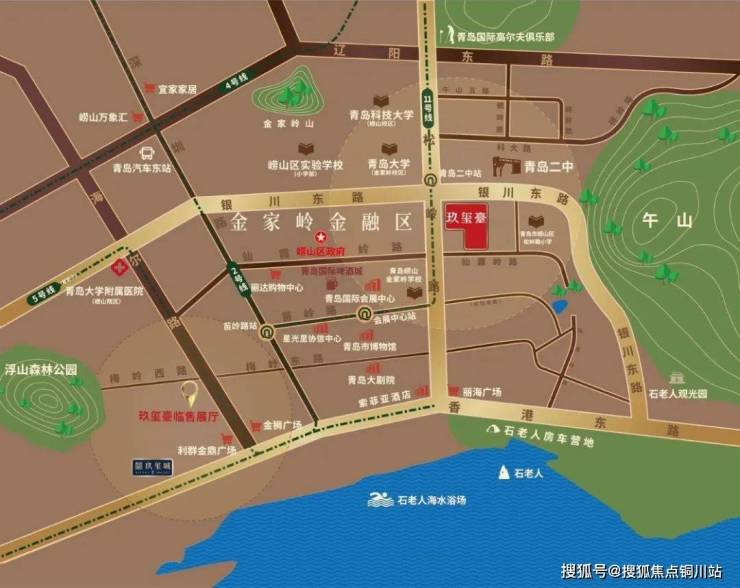 项目位于金家岭松岭路首,连接香港东路与辽阳东路,临近M11号线“青岛二中”站/M2号线“苗岭路”站/M5号线(建设中),距青银高速出入口约4KM,交通便捷。