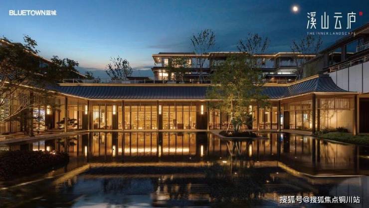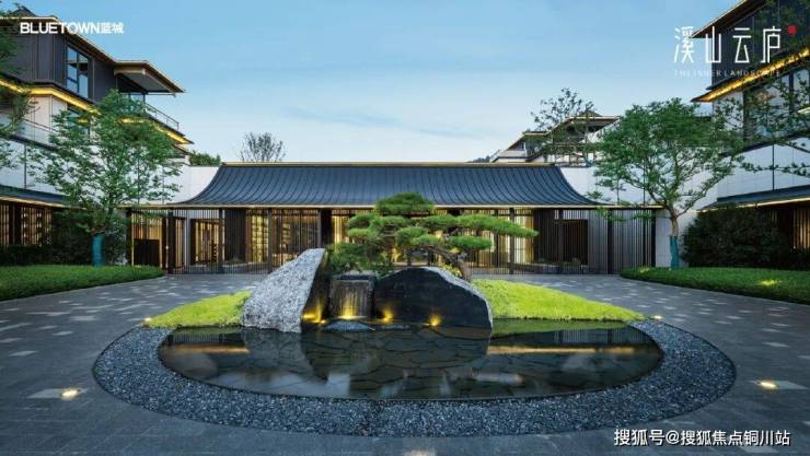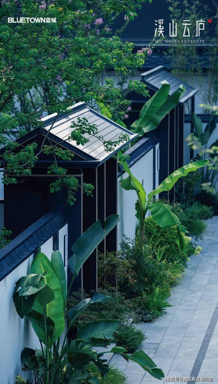 蓝城·溪山云庐,依山临溪,与余村景区隔溪相望,得天独厚的名画地势,受《千里江山图》意境启发,将画中意境植入园景打造,为当代雅仕提供理想的栖旅之境。
