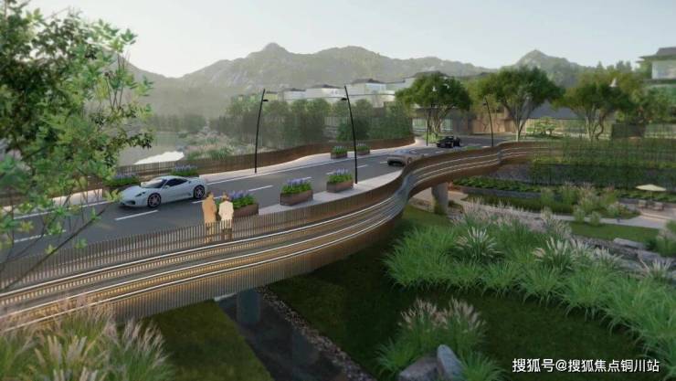 采撷《千里江山图》过桥而入的意境,设计长桥,连接余村又自成一方天地,心隐桃源之境,体悟“耳溪涧,目饱林峦”的诗情雅致。