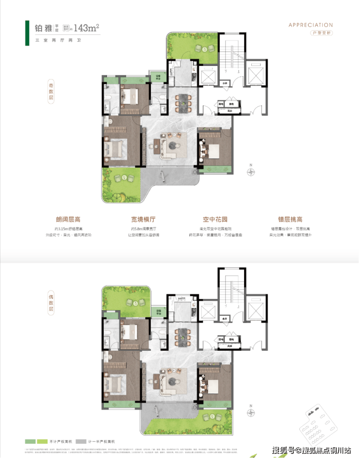 更为巧妙是“南北双花园”的设计,打破了传统空间的隔阂感,使得户型具备了强大的包容性与生长性,PLUS版的阳台空间满足多种生活场景的拓展可能。