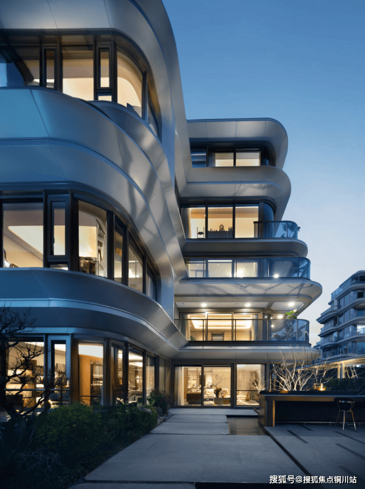 这次奥体潮鸣跨时代地采用了更具有视觉辨识度的曲面设计,传统的直角被圆弧转角代替。叠墅立面的定制曲面玻璃配合巴西金麻石材,无需赘述,只要亲自看一眼,就能感受到什么叫做品质。