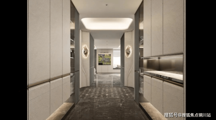 双玄关分立两侧,配合第一眼看到公共空间的震撼,有种影视大片里穿越两列侍者,进入豪华宫殿的独有尊崇感。