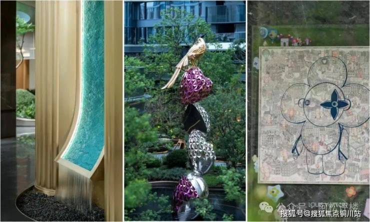 这里有以心为形、祥鸟为首、由20+名手工匠人历时400+小时打造的“永恒之心”雕塑,有风雨连廊内定制的琉璃瀑布和琉璃柱,甚至挂在连廊上的艺术丝巾画都安置的恰到好处……让艺术品与园林共生、共鸣,完成了社区园林从自然到艺术的进阶。