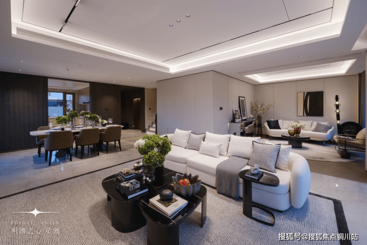 这意味着,未来业主完全可以自由定义家的尺度——比如社交层可以拉通整个约9.6米的南向面宽,打造“超级中心聚场”,也可以根据家庭结构,预留父母套房或茶室空间,舒尺的南向开间下,客厅空间依然排场十足。