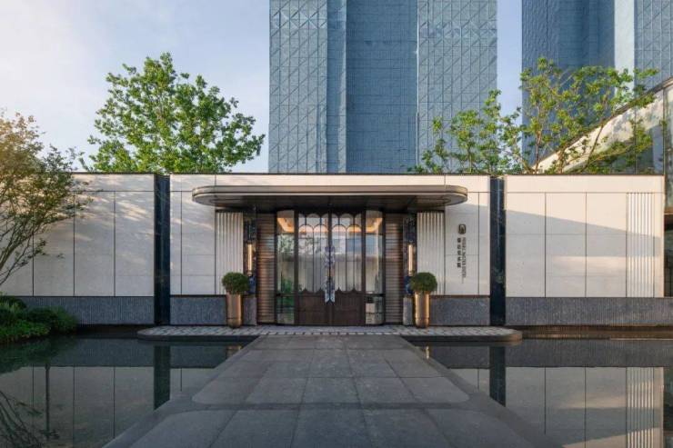 设计师巧妙汲取了香樟花园的灵感,招商臻境门庭入口处香樟破顶而出,是自然与都市的互融共生,是归家心绪的符号转场,作为对都市原乡理念的创新诠释,是空间的点睛之笔。自然元素穿透建筑的拱形立面,实现了生态与构造的和谐共生,为居住者提供了与自然对话的沉浸式体验。