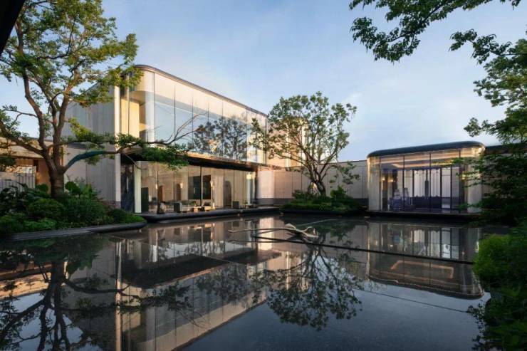 一方雅静的现代逸境,也许才是属于现代人的诗和远方。步入第二重水院,感官艺术与空间布局相融合,由内而外打造了海派生活场景。漂浮盒子与大面积的镜面水景交相呼应,打破了传统建筑与自然环境的界限,创造了一片闹中取静的城市绿洲。
