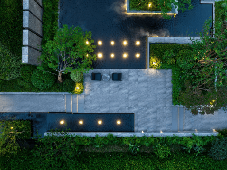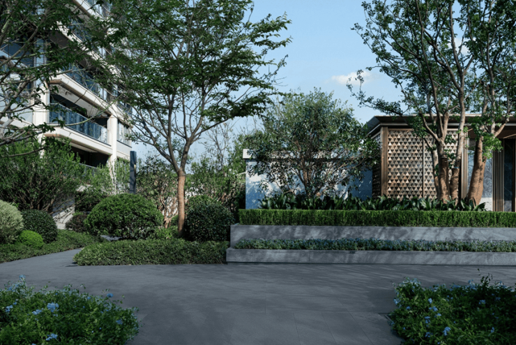 业主推窗即见社区核心景观,更通过架空层泛会所设计,将自然绿意引入建筑内部。晨起在私家庭院打太极,傍晚在林下空间品茗对弈,这种"把花园搬进家"的设计,让建筑与自然达成完美共生。
