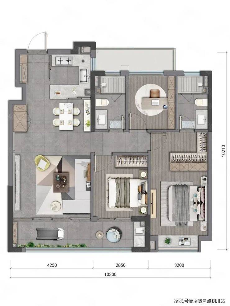 宽阔套房主卧:配独立卫浴及步入式衣帽间,挚享私密空间