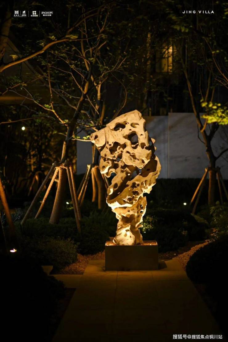 约500㎡的宽阔水景逐渐展开,视野所及,水面静谧如镜,倒映天光与建筑轮廓,而且奢石含量极高。整个示范区,运用了大量的法国木纹进口石材、莫奈绿石材等奢石。而那形似新加坡标志建筑的鱼尾狮雕塑,也是太湖石雕刻而成的。
