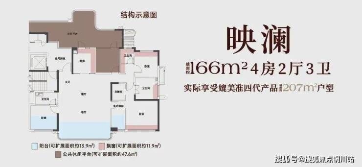 建面约166㎡,实际的居住体感,媲美常规准四代的建面约207㎡。