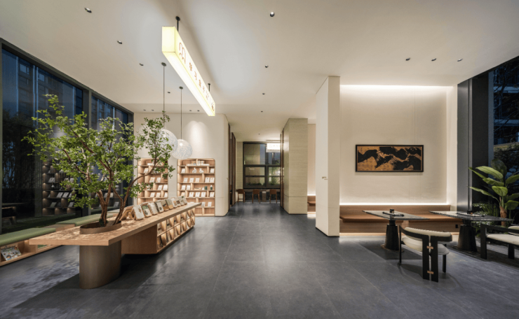 步入入户大堂,迎面而来的是一面巨大的奢石岩板背景墙,就像一幅出自国画大师之手的作品,让人浮躁的心瞬间沉静。