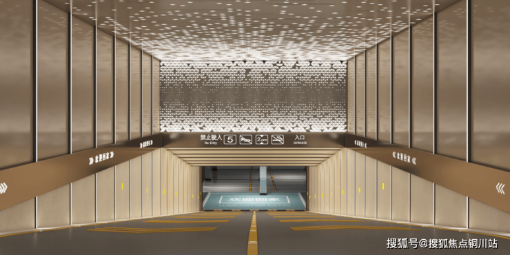 从地下空间开始,就让居者感受不同的体验,采用永久性材质的铝板冲孔、雅致古铜色的漆面,配合针对性的灯光布置,搭配星空顶+时光隧道墙面,组成奢定酒店式地库配置。