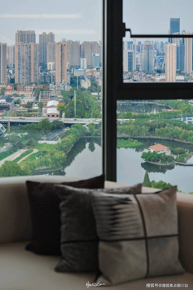 窗框代替画框,每天不重样变化着巨幕画报,宽广的天空尽收眼底,磅礴的长江奔腾脚下。