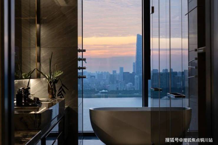 犹如理想之境,每天醒来,看到用沿江的天际线装饰的落地窗,伸个懒腰感受清晨自由洒入的第一抹阳光,或是泡在浴缸畅意地欣赏最后一抹夕阳。