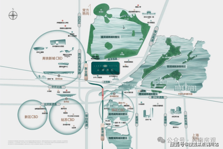 项目位于相城区盛泽湖畔,随着阳澄湖第三隧道(在建)的建成,未来约一刻钟车程即可畅达金鸡湖CBD。周边苏州北站、轨道交通2号线及规划中的多条线路,共同织就高效出行网络,实现繁华与宁静的从容切换。