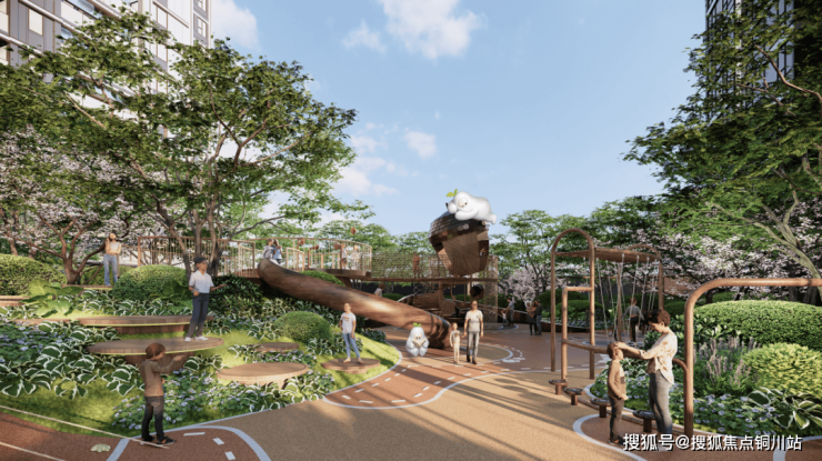再比如打造全龄社区,考虑到未来业主都是年轻家庭,除了满足成年人的需求外,项目还打造了一个规模很大且功能更丰富、更有意趣的儿童玩乐区,陪伴小朋友成长。
