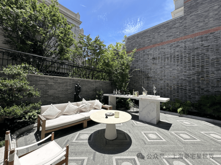 从小区正门走进来,寸土寸金的地段,做出了这样的三进院。地上铺的这些石板,都是原有百年建筑的材料。岁月把散落的材料与技艺,收拢成了这一座「回廊四合」的庭院。这些墙用的是「梅花丁」的砌法,勾缝是非常讲究的「元宝缝」,这都是专门邀请修复上海历史建筑的那些老师傅,才得以重现。