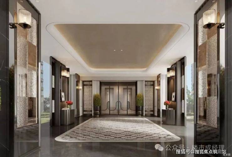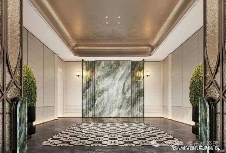 全精装酒店式大堂,以雕琢艺术品级的匠心,铺陈尊贵而有序的归家仪式。甄选蓝翡翠奢石景墙,地面水刀拼花工艺,勾勒奢华与雅致的归家心境。