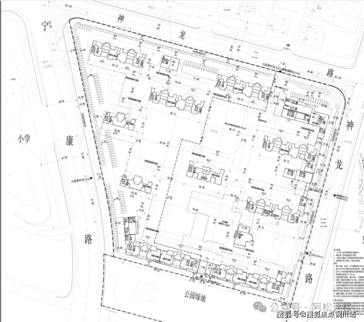 放大平面图来看,项目规划了下沉式庭院、公共会客厅等四代住宅元素,小区主入口位于地块东侧神龙三路上。