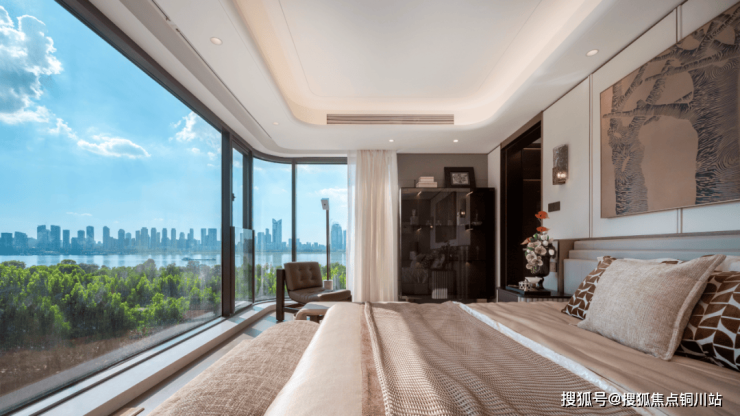 客餐厅与一旁次卧可观江,还有270°观江主卧套房,实现了“多面赏景,景随人动”