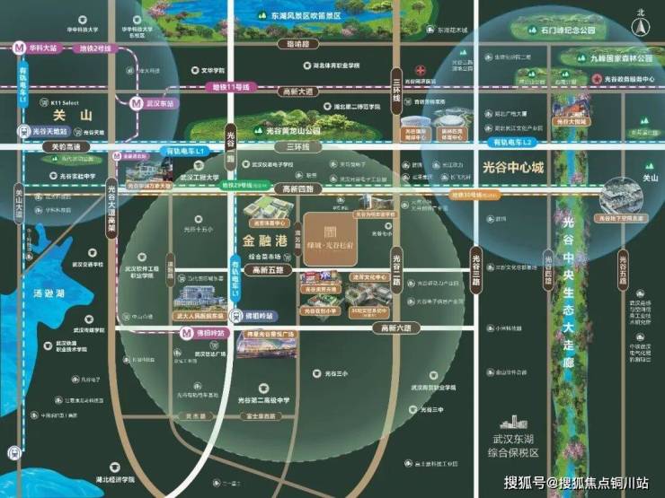 纵横立体交通网:便享三环线、光谷大道、高新六路等立体交通,纵向串联光谷金融港、软件园和光谷老城区;横向连接武昌、汉口等核芯地区及光谷东。