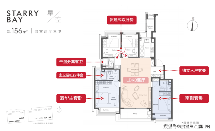 仁恒滨湖湾约156㎡的户型,做到了双套房,三卫生间配置。功能性拉满了~