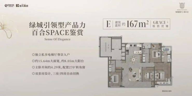 户型方面,143 ㎡和167 ㎡两款户型,显然经过充分的市场调研,也体现出产品自信。
