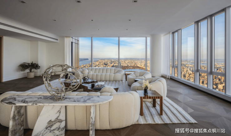 号称全球最贵豪宅的纽约ONE57,270°窗景俯瞰哈德逊河,对望曼哈顿市中心,纵览纽约最好的城市景观中央公园。