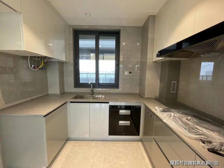 厨房配置西门子嵌入式洗碗机,操作按钮藏于内部;还配有爱适易/格蒂垃圾处理器,减少厨房异味和细菌;加厚的台面、细腻的浅挡水工艺,让厨房颜值拉满。