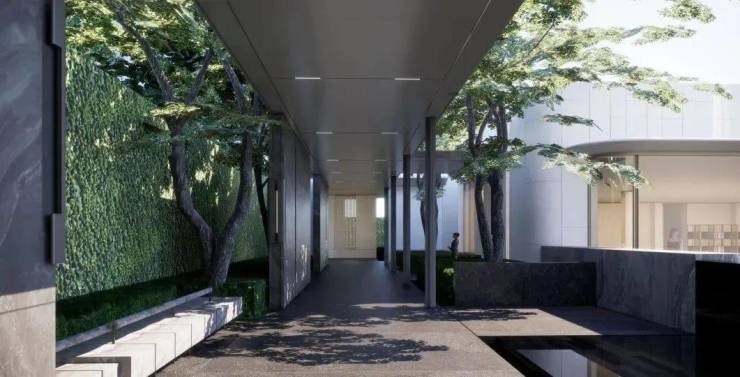 景观设计:以比肩全球滨水奢华度假酒店的园林规划,打造向水而生的自然谧境。园区内设计了 15 条景观轴线和 30 个对景庭院,还打造了 12 个由印象派油画演变而来的天珺高定花园。在大门与迎客前厅间,构建约 66 米长的横向迎宾水轴,辅以 12 棵特选乌桕,营造静谧归家氛围。