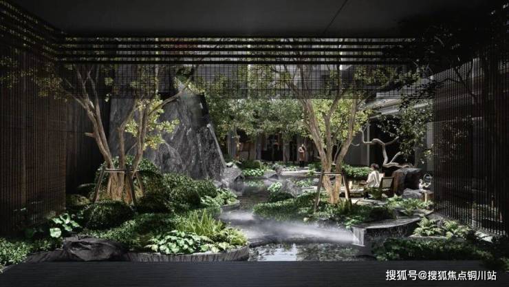 奉化首个超2000方下沉式庭院,结合园区入口会所设计,面向庭院的立面设计通透的大面积玻璃幕墙,让室内外相互交融,为地下空间引入自然采光和通风营造出具有层次感的空间场景,为住户带来极致的度假体验。
