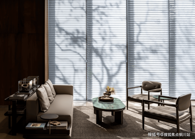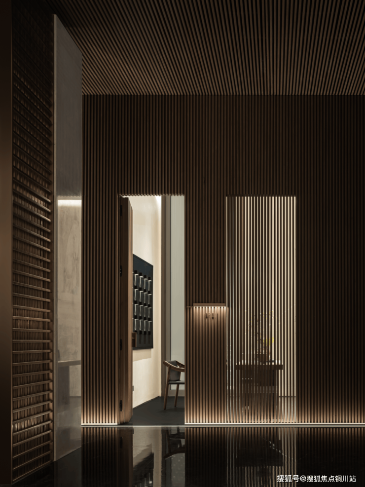 在越秀·青铁和樾府的空间设计中,深入考量城市高阶人群的生活习惯,参照安缦酒店风格,打造地上+地下双会所。