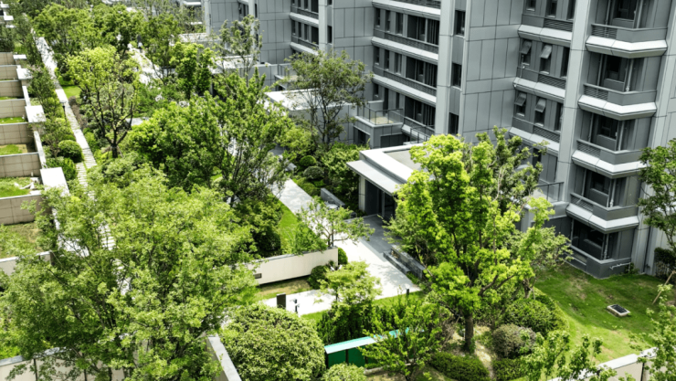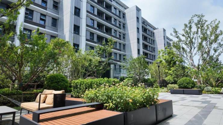 小区内的植物丰富度也经过提升优化,全冠移植的金桂、紫薇、红枫等树木品类增加,低矮灌木则提升了园林的层次感。