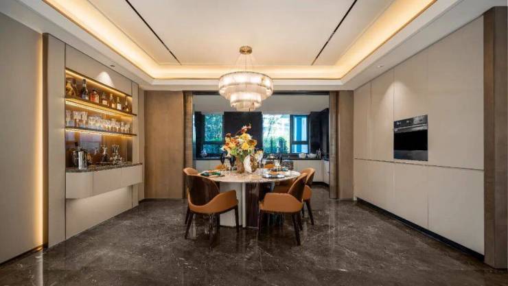 独立的家政空间、专门的洗衣干衣区、独属红酒收藏室等设计,将生活和家政完全分开,让家的场景更为温馨和有序。
