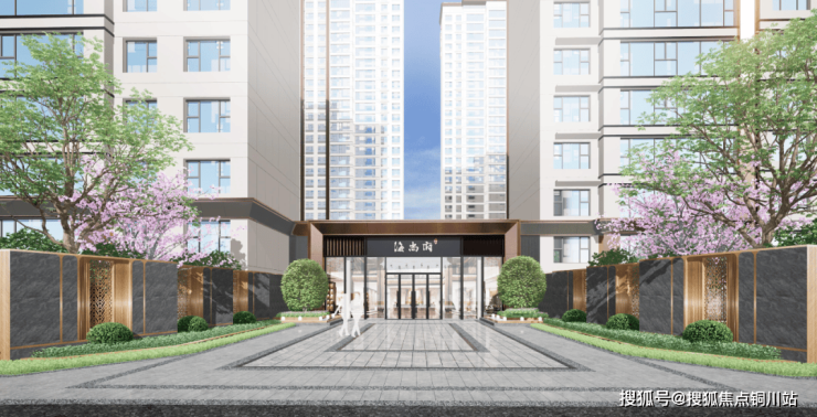 它设有地上、地下双精装大堂。其中,地上社区大堂的大门采用香槟金色的金属与玻璃幕墙,门口设置了12米长的迎宾水景台地景观,其奢华感堪比五星级酒店。