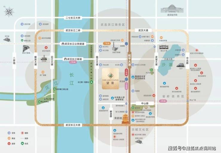 自驾:项目位于和平大道和临江大道间,去武昌哪里都方便,依托长江大桥、长江二桥以及长江隧道和武汉公铁隧道,快速纵横全城。